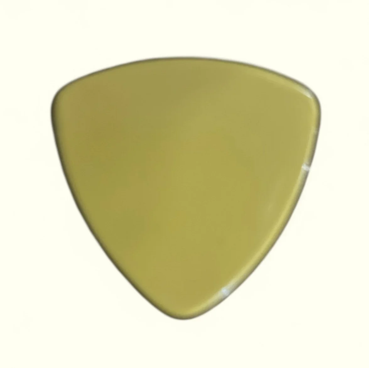 Torlon – A high performance thermoplastic known for its exceptional strength, stiffness and resistance to wear. It is often used in aerospace, automotive and industrial equipment applications. As a guitar pick, it is quiet, extremely fast, and produces a warm and balanced tone. It is available in a gold-green color. Thicknesses available in 1.0mm through 2.0mm. - $25 - Includes tracked shipping
