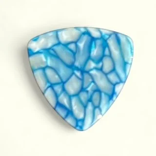 Casein – A form of plastic made from milk protein with an added chemical to make it hard and durable. It was popular in the early 20 th century for creating buttons, jewelry and pens. As a guitar pick, it has a warm, mellow tone. It is available in several patterns and colors. Thicknesses available in 1.3mm through 2.0mm. - $25 - Includes tracked shipping